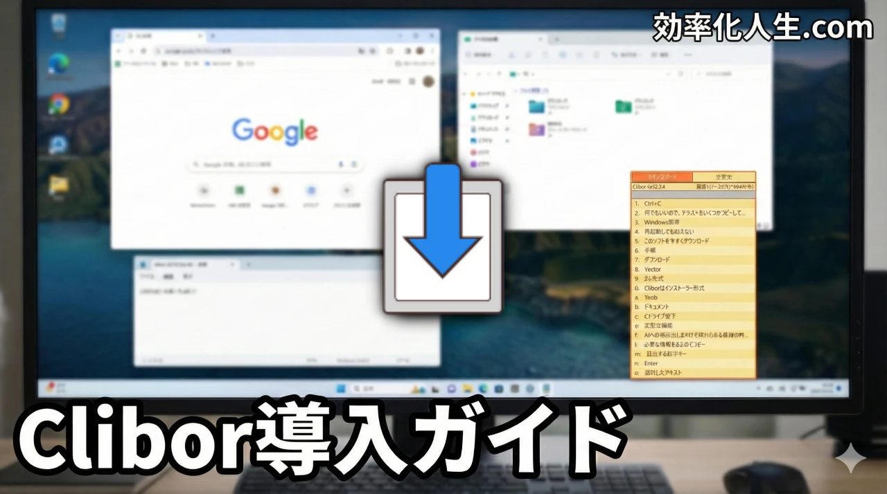 「Ctrl+C」を押して、画面を切り替えて「Ctrl+V」。 また画面を戻して、次の行をコピーして、また切り替えて貼り付け……。 この「画面の往復」の時間、すごくもったいないと思いませんか? もしあなたが、まだ「1回コピーしたら、1回貼り付ける」という作業を繰り返しているなら、この記事を読むだけで、今後の作業時間を数十時間は節約できるはずです。 今回は、Windowsに入れていないと損をするレベルの国産フリーソフト、「Clibor(クリボー)」の導入方法と、絶対にやっておくべき初期設定を解説します。 Wi ...