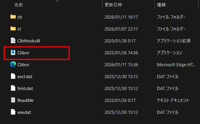 Clibor.exeをダブルクリックします。