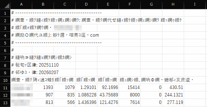 そう考えてデータをCSVでダウンロードしたものの、Excelで開いたら文字化けしてて読めない…。